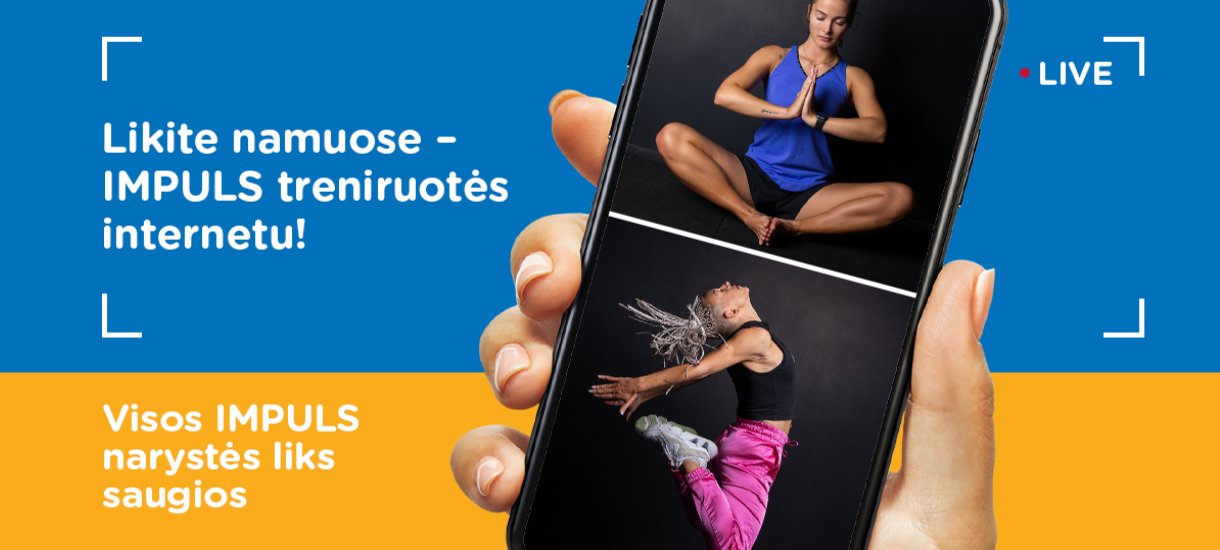 • Taip pat paruošėme profesionalias treniruotes internetu IMPULS klientams. Į šias treniruotes registruotis ir jose dalyvauti mūsų puslapyje impuls.lt gali tik prisijungę IMPULS nariai. Treniruočių tvarkaraštis čia: https://www.impuls.lt/klubai/live-treniruociu-klubas/tvarkarastis