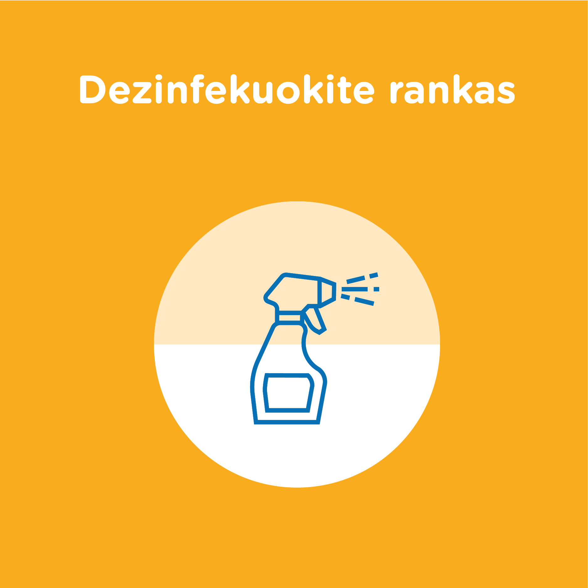 – Reguliariai plaukite rankas muilu arba naudokite dezinfekcinį rankų skystį.