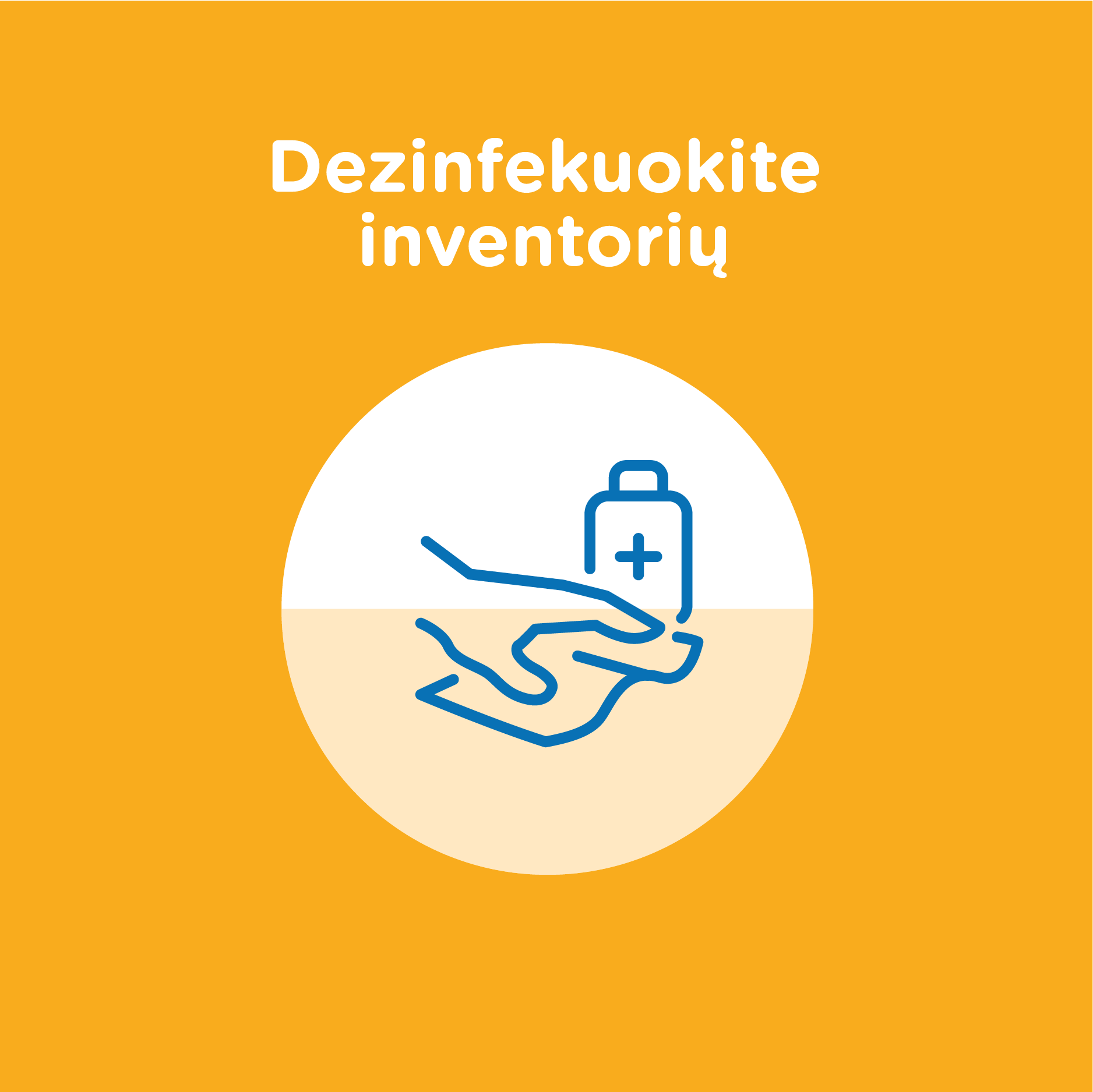 – Dezinfekuokite inventorių. Prieš ir po pratimo dezinfekuokite treniruoklių ir sporto kilimėlių paviršius.