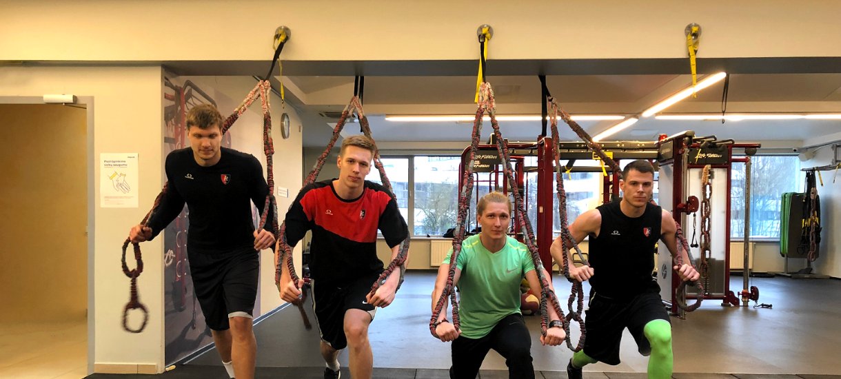 Šį ketvirtadienį krepšininkai sveikatingumo klube „Impuls“ pirmą kartą išbandė funkcines treniruotes su guminiais diržais „Revoring“. Nors iš pirmo žvilgsnio treniruotės neatrodo sunkios gero fizinio pasirengimo krepšininkams, jie neslėpė – nauji pratimai priverčia pajusti raumenis, kurių skausmą jau seniai buvo pamiršę.
