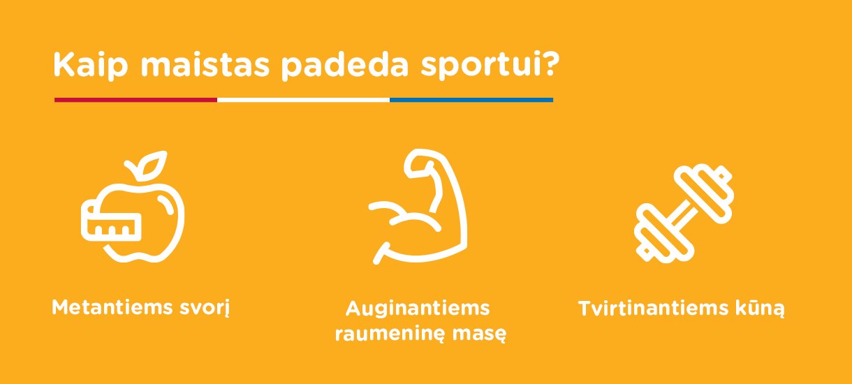 Siekiant savo tikslų sporto salėje, didžiulė sėkmės dalis slypi virtuvėje. Tik atradus sporto ir mitybos balansą sustiprėsime, būsime energingi ir matysime rezultatus. Paruošėme patarimus, kurie pravers visiems, ir patarimus metantiems svorį, auginantiems raumenų masę ar tvirtinantiems savo kūną.