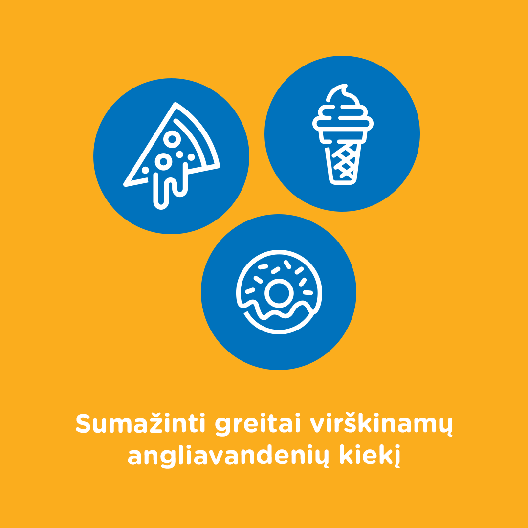 Pradėjus rūpintis sveikata ir sportuoti negalima atsisakyti angliavandenių, nes jie suteikia energijos. Tačiau reikia rinktis ilgai virškinamus, daug skaidulinių medžiagų turinčius angliavandenius. Todėl rekomenduojame nuo šiandien sumažinti greitai virškinamų angliavandenių kiekį maisto racione.