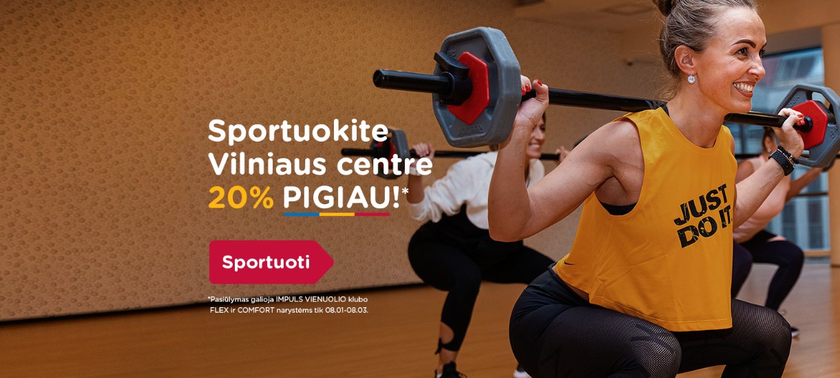 Gerai treniruotei svarbus ne tik nusiteikimas, profesionalūs treneriai, įranga, bet ir aplinka. Pasinaudokite galimybe sportuoti -20% pigiau viename gražiausių sporto klubų Vilniaus širdyje – Vienuolio IMPULS!