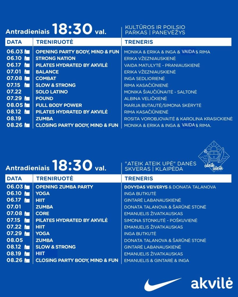• Treniruotės vyks visą vasarą pagal iš anksto paskelbtą grafiką. Esant blogam orui informuosime apie pakeitimus socialiniuose tinkluose.