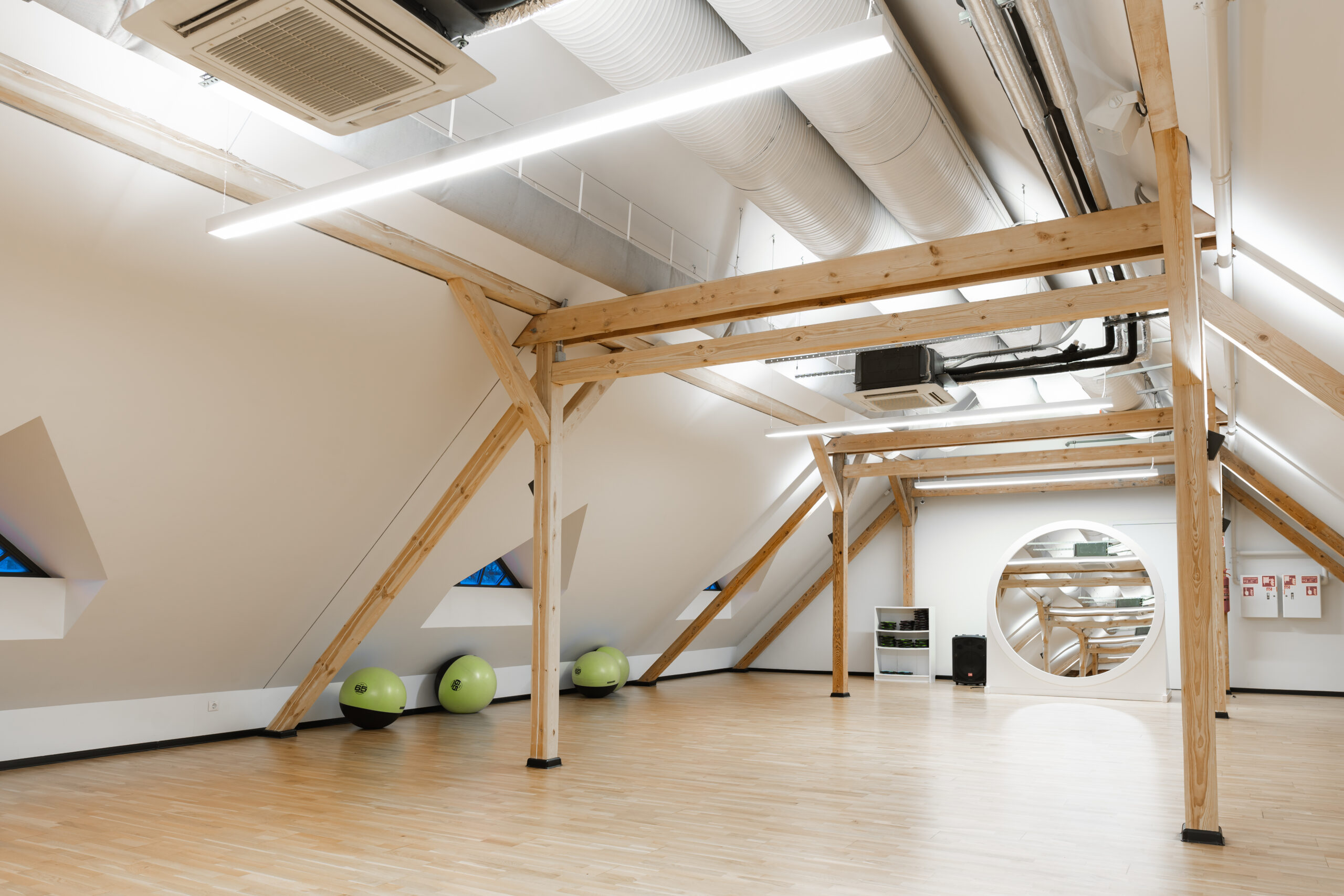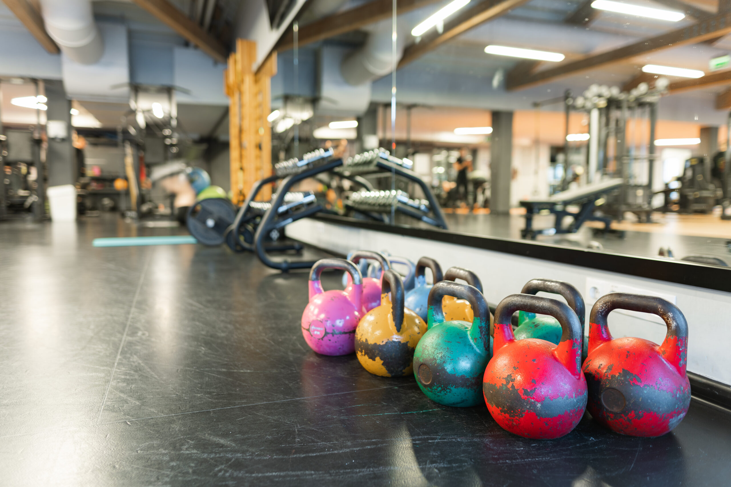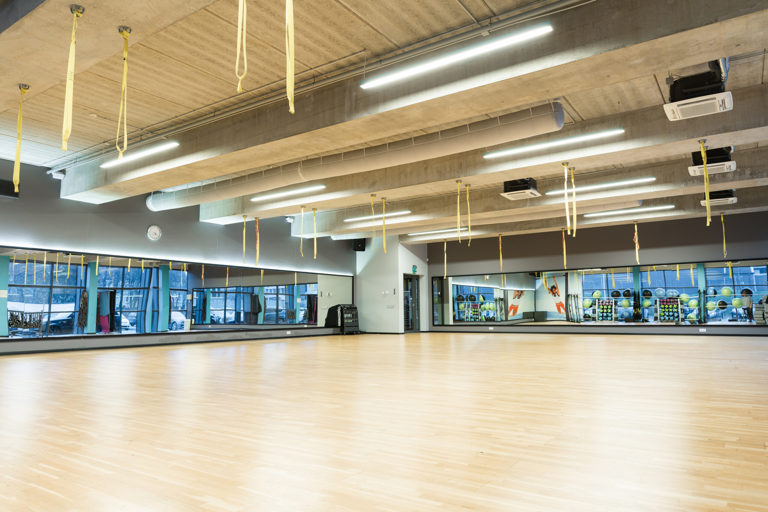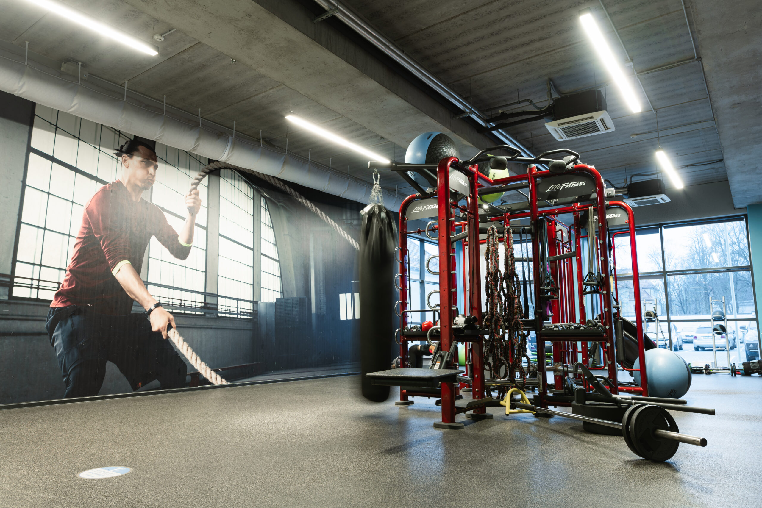 Erdvi treniruoklių salė su profesionalia įranga; 5 grupinių treniruočių salės – daugiau kaip 200 treniruočių per mėnesį!