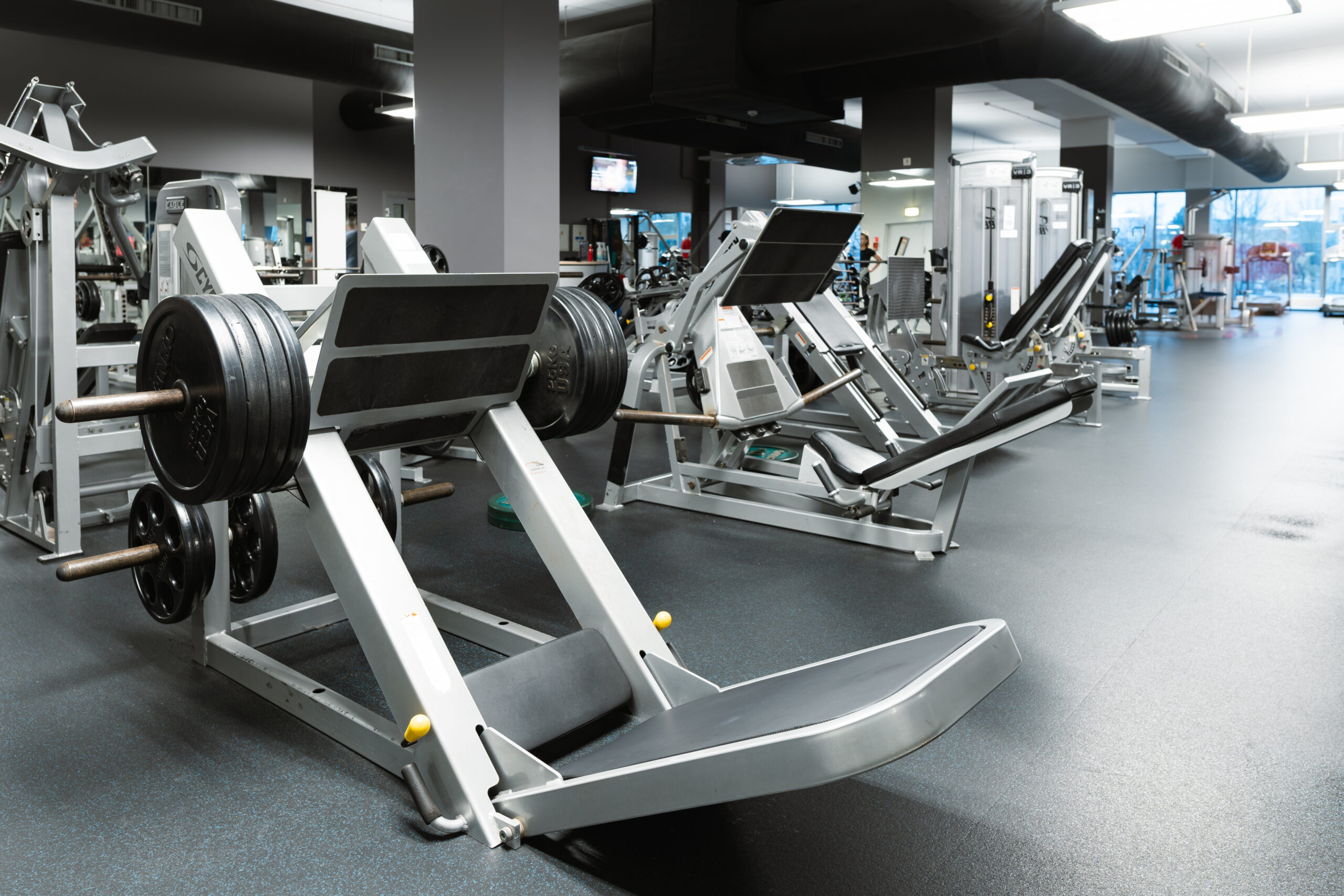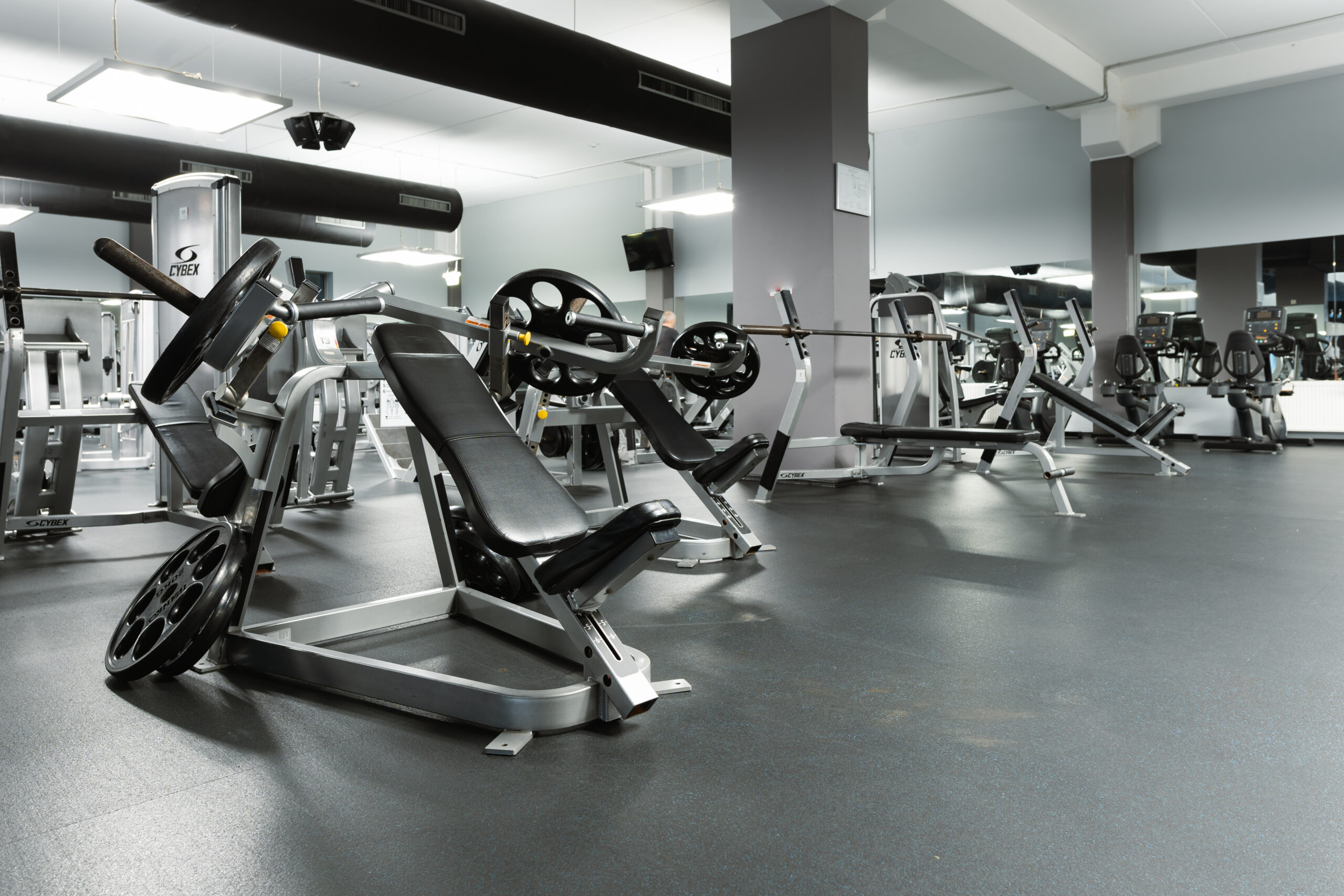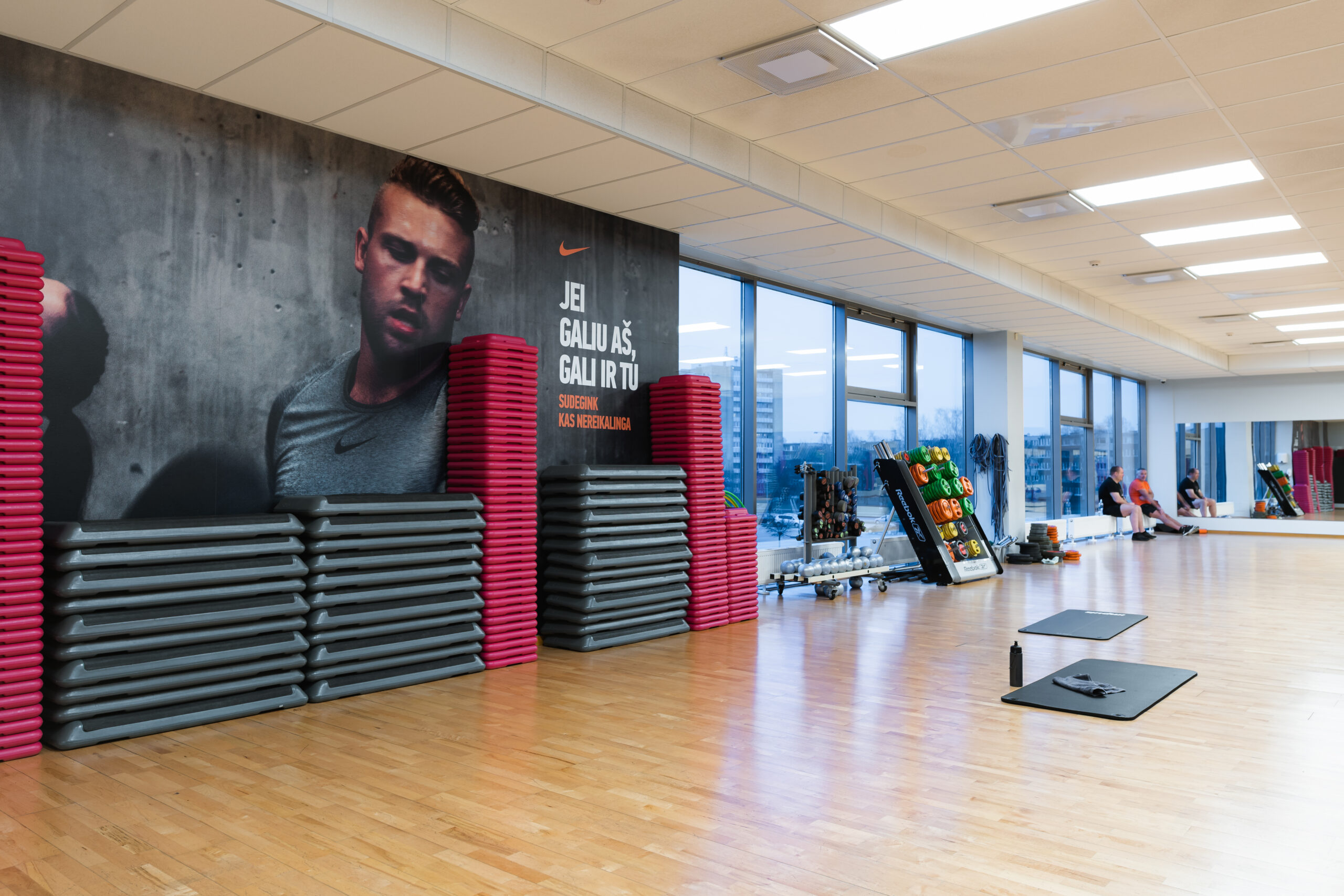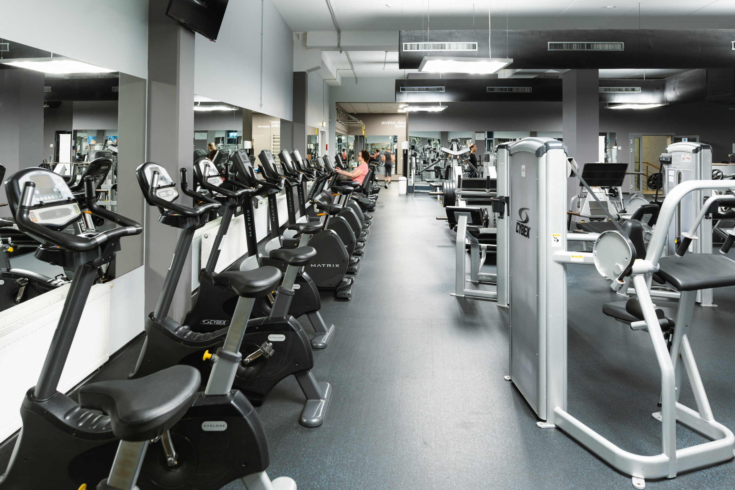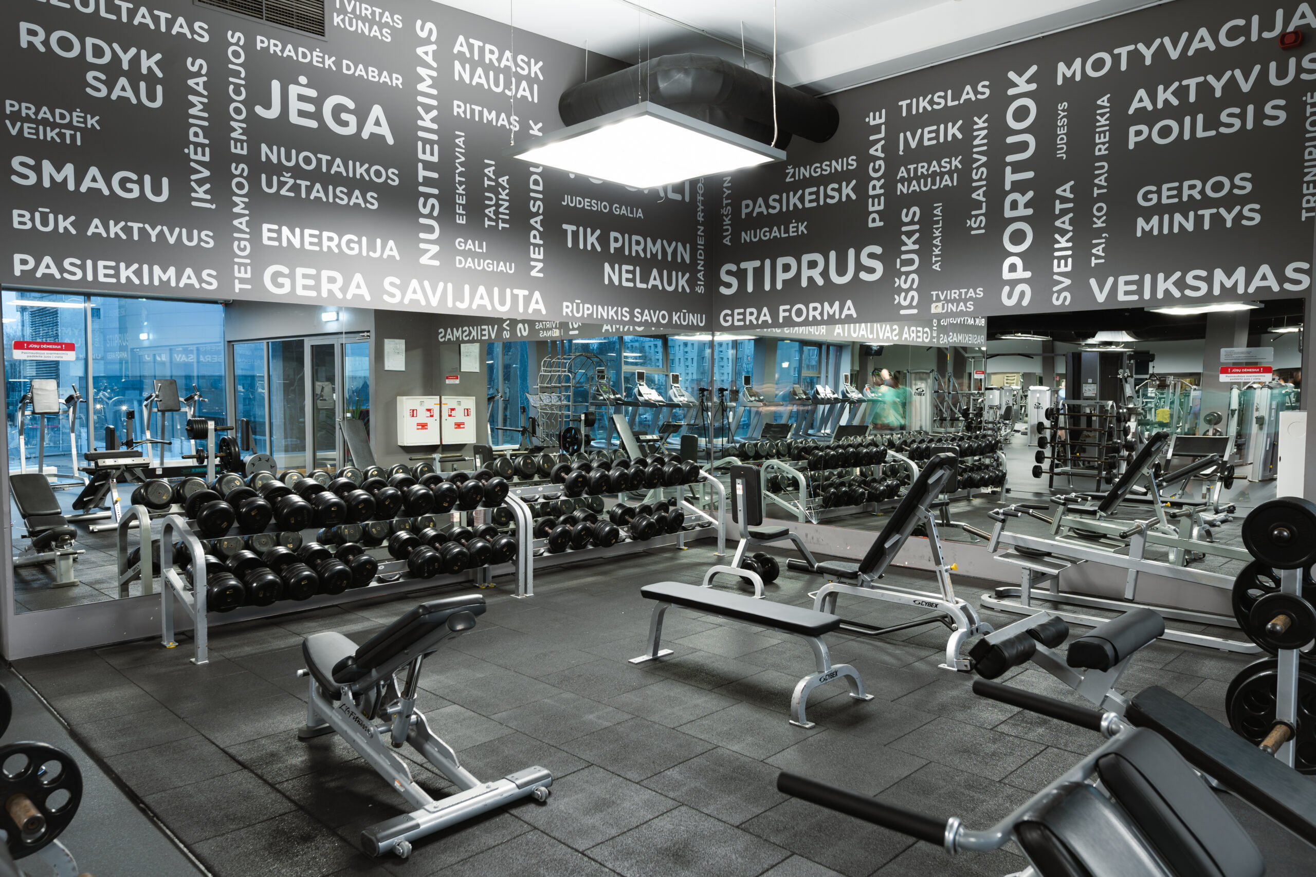Erdvi treniruoklių salė su laisvų svorių zona; 4 grupinių treniruočių salės – daugiau kaip 200 treniruočių per mėnesį!